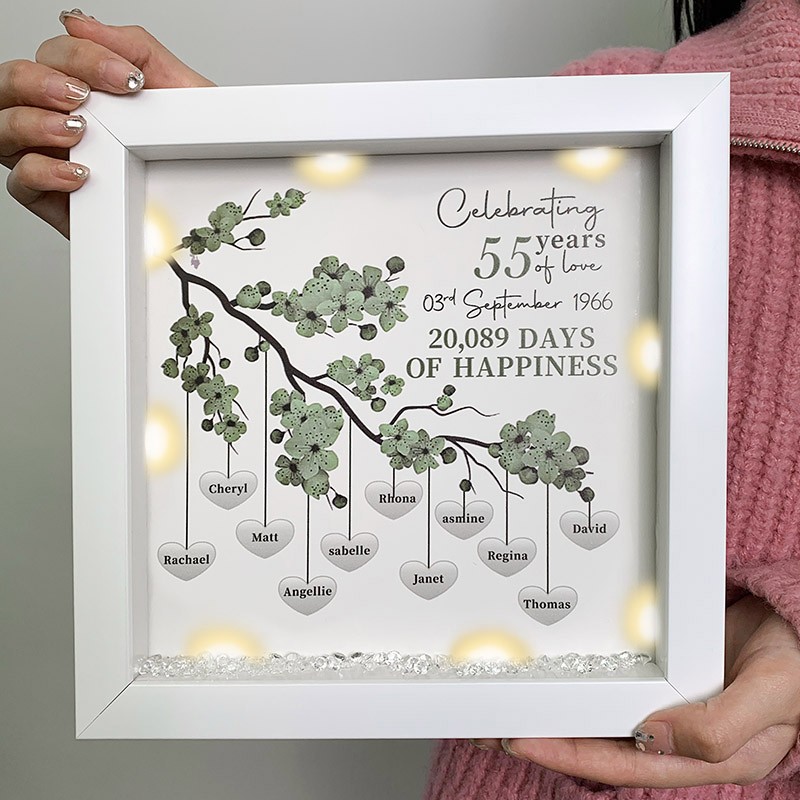 Vangogifts Custom Message Green Personalised Light Up Family Tree Box Frame with 1-25 Names Mother's Day Gift For Grandma, Mom