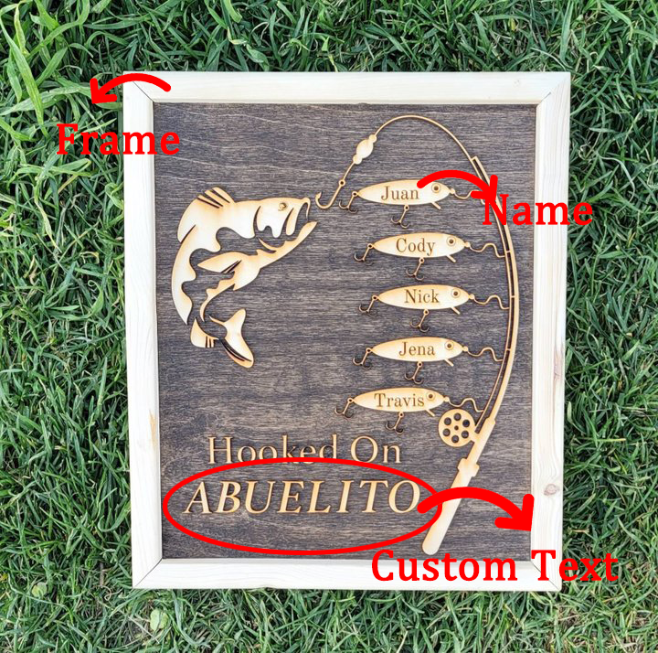 Hooked on Grandpa Papa Dad Father's Day Birthday Sign Personalized Customized Fishing Trip Gift For Him 1-10 Names
