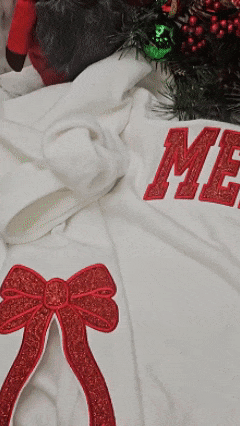 Personalized Green/Red Merry Christmas Bow Side Sweatshirt