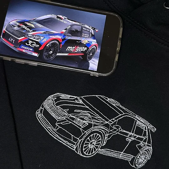 Personalized Sweatshirt Embroidered Car Photo Line Design Custom Name Attractive Gift for Car Lovers